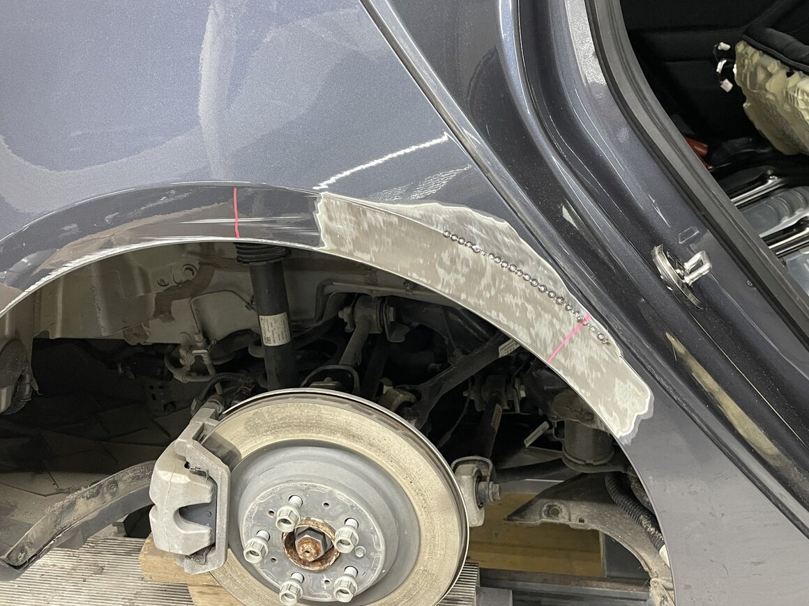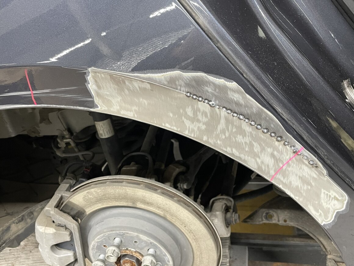 Eine Diskussionen kann es bei der Entscheidung geben, ob eine im Bereich des Radlaufes beschädigte Seitenwand mittels Push-Pull ausgebeult oder ersetzt wird.